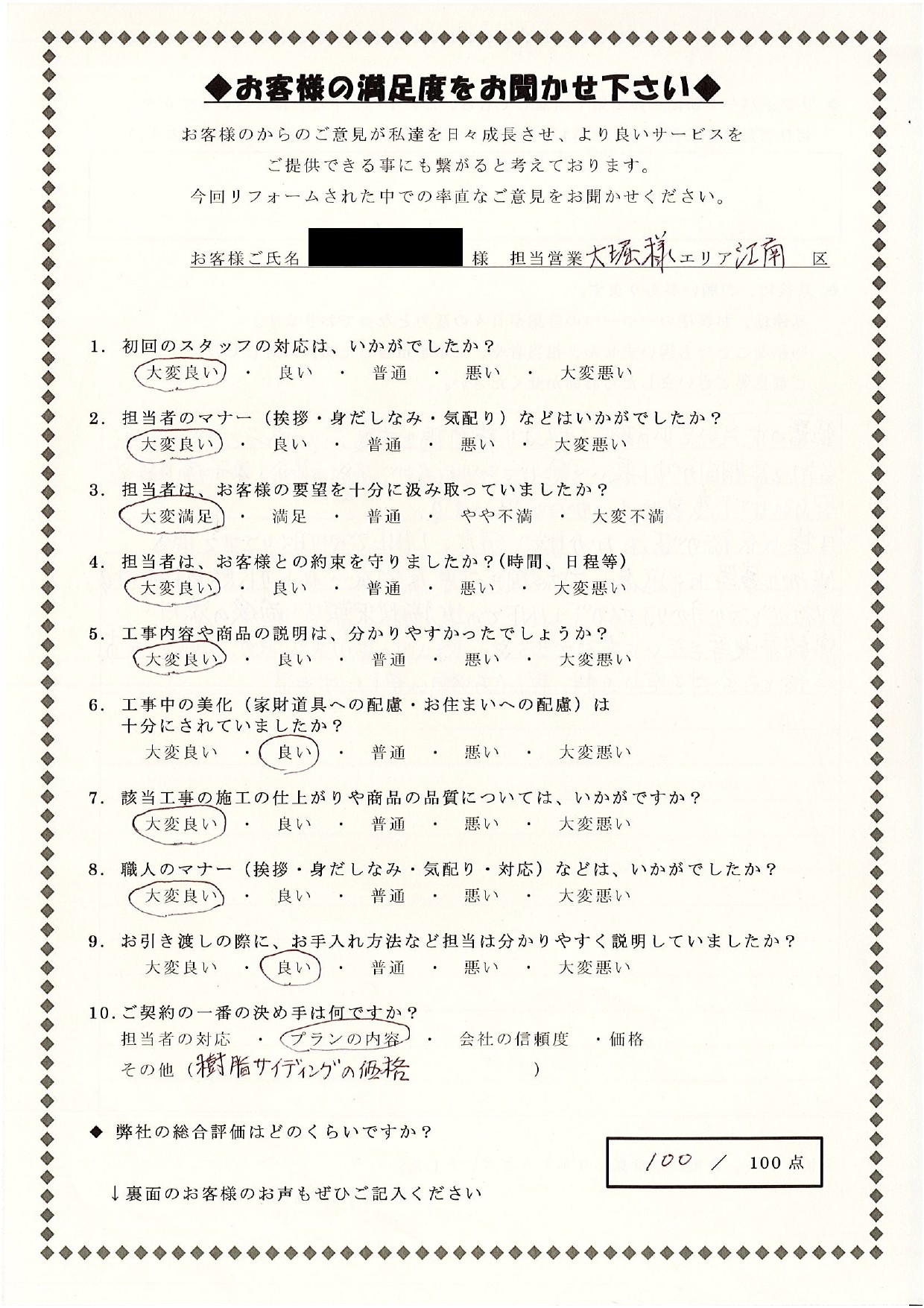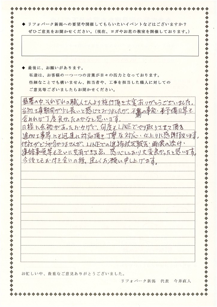他社がどうか分かりませんが、LINEでの進捗状況報告・画像の添付・連絡事項等も互いに共有できる点感心しており大変良かったと思います。